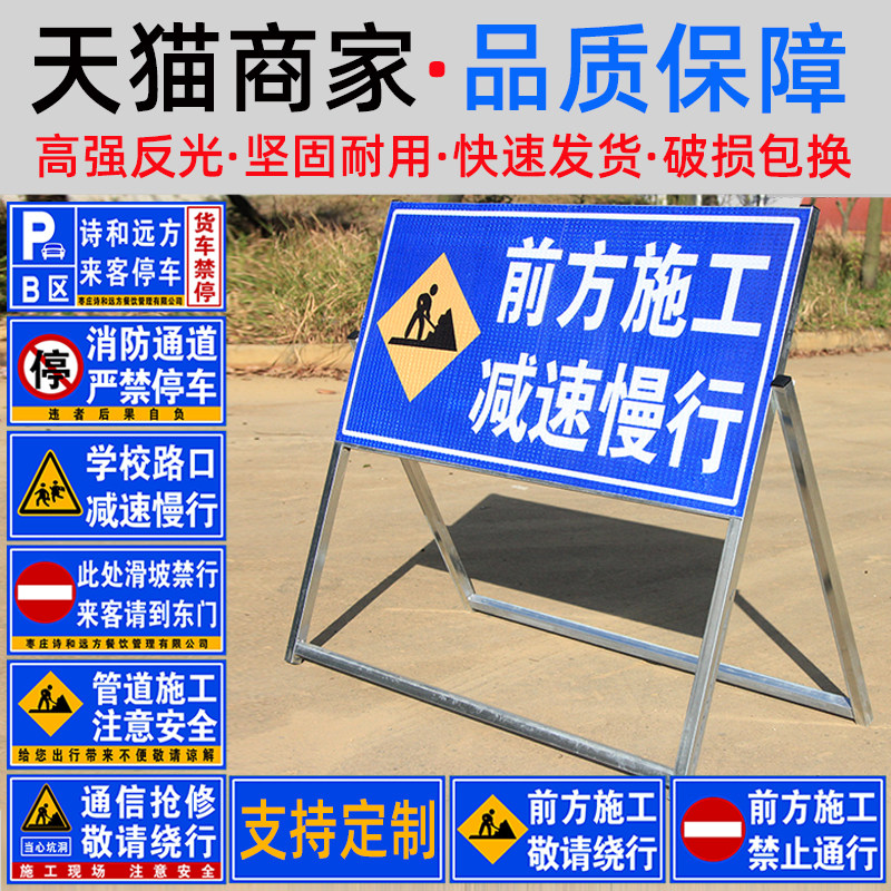 前方道路施工警示牌反光交通牌限速标志指示牌市政工程折叠牌定制热门设计联盟服务商