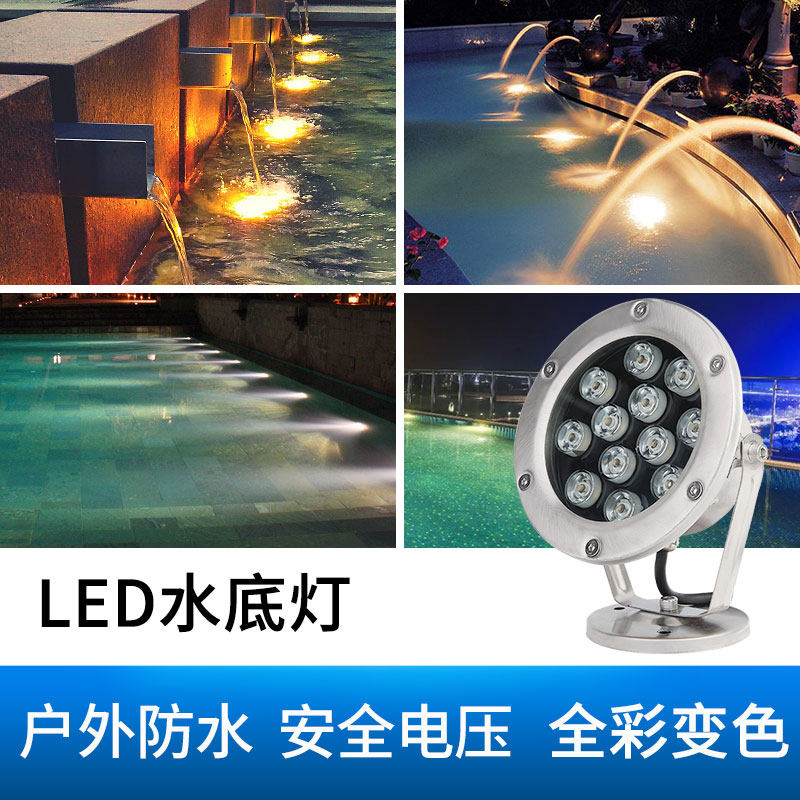水底灯led防水射灯24V低压彩色水下灯游泳池鱼池灯水池喷泉景观。热门设计联盟服务商