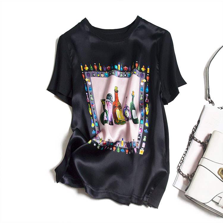 超a气质款真丝数码印花t恤 设计感小众桑蚕丝短袖圆领打底上衣潮热门设计联盟服务商