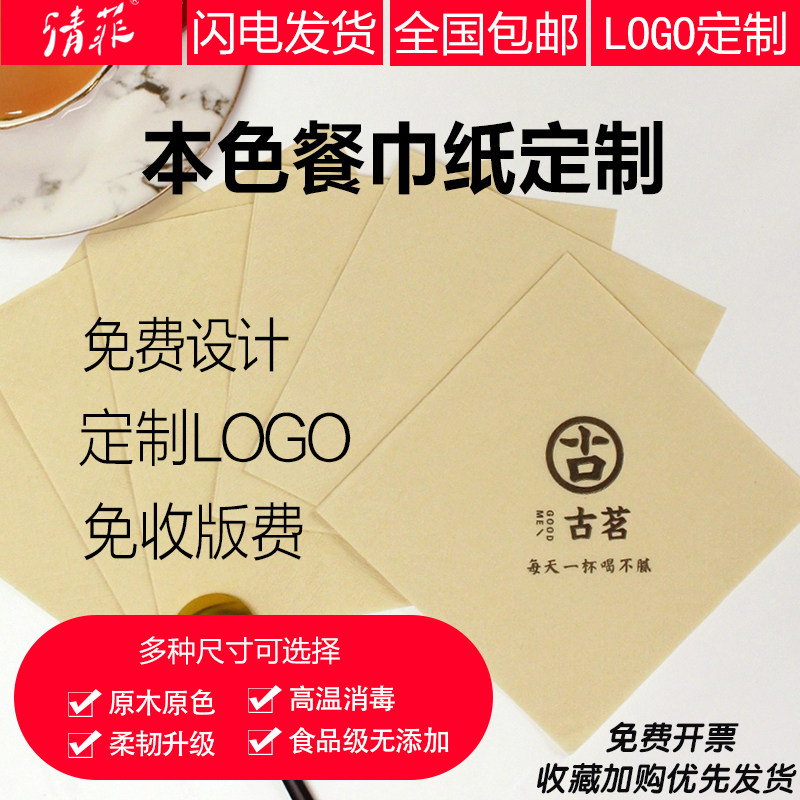 本色餐巾纸定制印logo订做木浆纸巾饭店专用便宜方巾纸广告纸批发热门设计联盟服务商