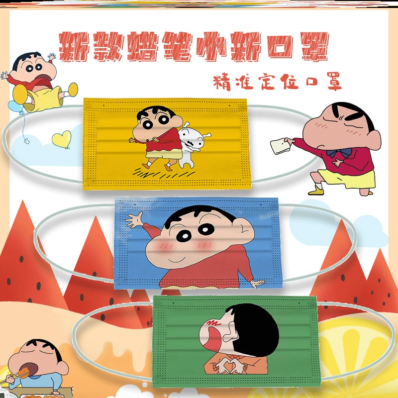蜡笔小新口罩50只装口鼻罩个性可爱含熔喷儿童3层卡通一次性印花热门设计联盟服务商