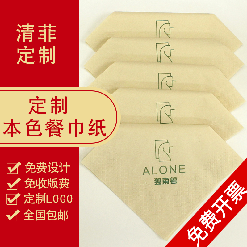 木浆纸巾饭店专用便宜方巾纸广告纸本色餐巾纸定制印logo订做热门设计联盟服务商